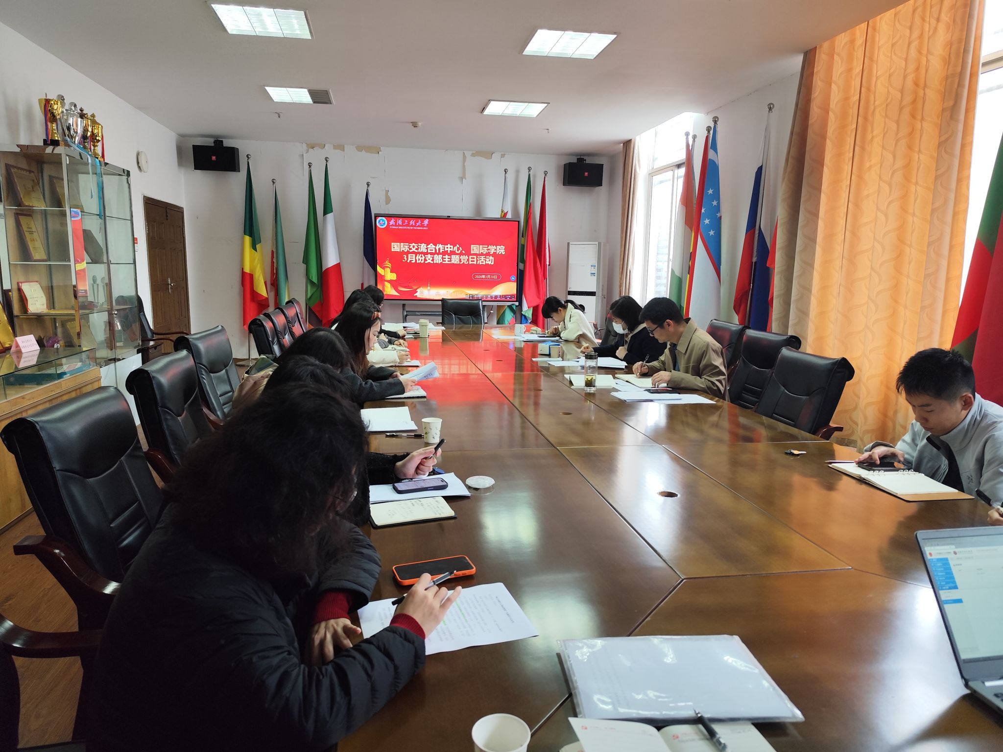 本网讯(通讯员 陈小红)3月23日上午,国际交流合作中心304am永利直属党支部在武昌校区721会议室组织召开了3月份支部主题党日暨树立和践行正确政绩观学习教育专题学习会,直属党支部书记桂展鹏主持会议,全体党员参加会议。